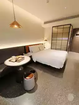 The bedding is incredibly comfortable, with a soft mattress wrapped in a skin-friendly cotton comforter. When I'm tired from shopping, I feel like I'm sinking into a cloud and slept soundly all night. The room is packed with thoughtful details: the dressing table has a makeup mirror with light, the toiletries are made with an Afu essential oil set, and even the tea table has Suzhou's specialty Biluochun tea bags. A cup before bed is so refreshing!