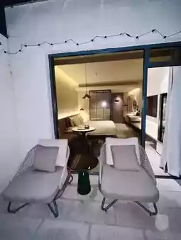 I was pleasantly surprised the moment I entered! The room has its own small courtyard, paved with bluestone, furnished with bamboo tables and chairs, and decorated with a few green plants. When it rains, I can sip tea while listening to the sound of the rain, or when it's sunny, I can just stare blankly in the sun. I instantly embody the tranquility of a Jiangnan scholar. Every photo I take captures the ancient atmosphere!