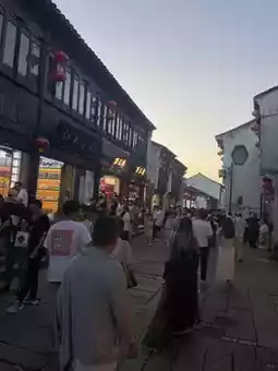 During the day, Qili Shantang is less crowded, making its white walls and black tiles particularly clear. In the evening, Qili Shantang becomes increasingly crowded, with the setting sun tinting the white walls with a hue of orange. At night, the crowds are so intense that certain spots are practically impossible to squeeze into.