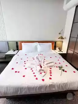 My heart skipped a beat the moment I opened the door—the Andu Hotel's flower-adorned couple's king-size room is truly a masterpiece!