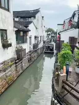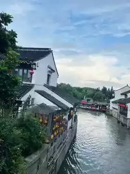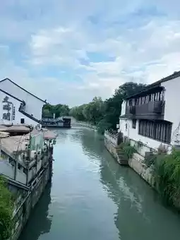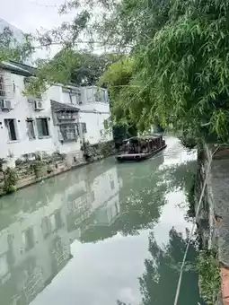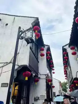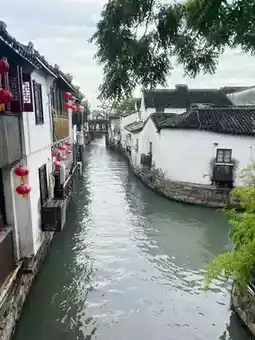 A must-see in Suzhou is Shantang Street, known as "Jiangnan's No. 1 Street"! Walking along the small river, you'll find rows of whitewashed, black-tiled Jiangnan houses on both sides, and occasionally see boats drifting by, creating a beautiful scene reminiscent of an ink painting.