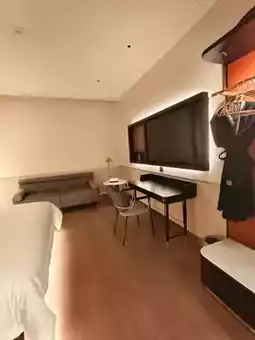 The room’s smart facilities are user-centered: intelligent Xiaodu voice control for lighting and air conditioning makes device use convenient, with clear guidance and worry-free operation. Details stand out: soft night lights, handy wardrobes, and a shower system with instant and stable water temperature.