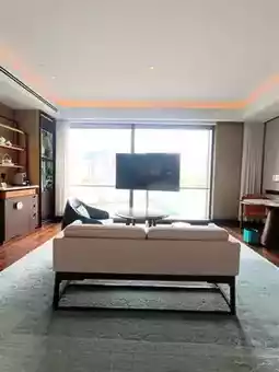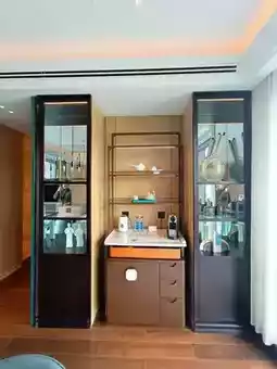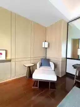 Guest rooms start at 60 square meters, also following the three-entry layout, cleverly separating the bedroom and living area. The begonia-shaped vanity mirror in the bathroom is stunning, equipped with a Dyson hairdryer and Le Labo’s custom Santal 33 series bath products with sandalwood fragrance.