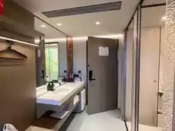 🛏 Comfortable Room: I stayed in an Anshixiang Yu King Room, and from the window, I could see the whitewashed walls and black-tiled houses of Suzhou's historic past and the bluestone pavement. The room was spotless, with sheets changed after each guest, and the bathroom had separate wet and dry areas. Features like facial recognition door opening and voice control made check-in incredibly convenient, allowing you to control lights, curtains, and more with just your voice. Drinks in the refrigerator and mini-bar were free, and the mineral water was unlimited, a truly thoughtful touch.