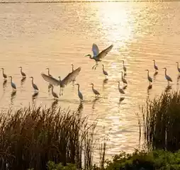 In the early morning before the mist dissipates, hundreds of Eurasian Coots and Spot-billed Ducks swim among the reeds. Bring a telephoto lens, and you can capture the spectacular sight of cormorants flying in formation overhead.