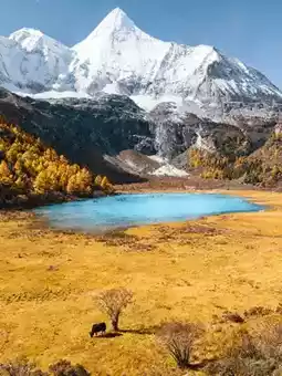 The autumn of Daocheng Yading is like a richly colored oil painting. The meadows of Luorong Pasture turn golden, poplar groves and fiery red shrubs surround the blue Milk Lake, and the snowy peaks of Xianuoduoji Mountain are dotted with white. Hiking from Chonggu Temple to Pearl Lake, the fallen leaves rustle underfoot, and the lake reflects the red leaves and snow-capped mountains, each step a stunning "heaven for the eyes." Staying in Yading Village, you can witness the golden sunlight on the mountains, with morning light casting warmth on the colorful forests, snow mountains, and red leaves.