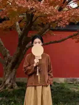 Outfits mainly feature the new Chinese style: brown cotton-linen cardigans paired with khaki slip dresses, accessorized with vintage tassel bags and peace buckle necklaces, exuding a cool vibe; or choose moon-white or cyan Hanfu, holding a round fan in front of red walls and ancient maples, with light and shadow filtering through branches onto the sleeves, full of Zen spirit.