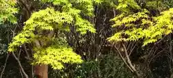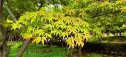 Nearby are the lush green maple leaves