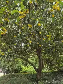 Driving onto the island ring road, you don’t even need to search deliberately; the faint sweet scent drifts in through the rolled-down car window. Stop the car and walk into any village alley, and you will see—beside farmhouses, at the foot of the hills, near temples—the pale yellow little flowers quietly covering the branches amid layers of dark green leaves.