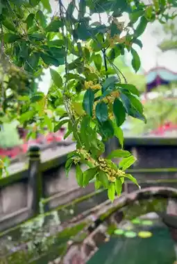 · Under a 1,200-year-old camphor tree, villagers gently tap branches with bamboo poles to collect “osmanthus rain”
