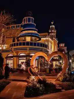 During the day, it feels like stepping into a European fairy tale town 💒 with sunlight shining on the buildings, as beautiful as a postcard! At night, the lights turn on and it’s incredibly romantic 💥 especially the heart-shaped sculpture, a perfect photo spot for couples! 👩❤️👨