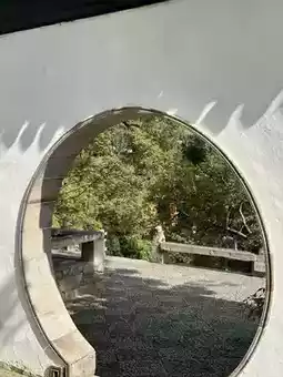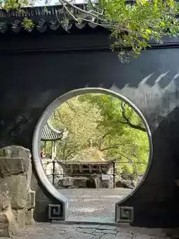 1️⃣ Broken Beam Hall → Hanhai Spring (Round Door Frame View)