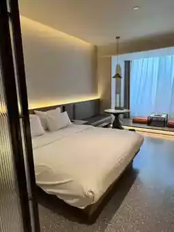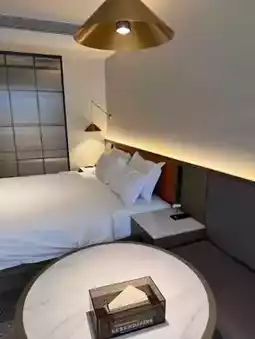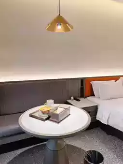 The 1.8-meter bed is covered in soft, high-count cotton linens. It feels like sinking into a cloud, and after a tiring day exploring the gardens, you'll fall into a deep sleep in no time. The small sofa by the window is perfect for autumn. Sipping tea in the sun while watching the leisurely stroll of old Suzhou below instantly slows down the pace. The separate wet and dry bathroom is stocked with wood-scented toiletries, and even the hair dryer is a Dyson—a delight for detail-conscious travelers.