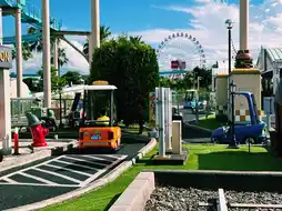 The park's highlight is the "Little Driving Academy," where children don helmets and climb aboard miniature racing cars to learn traffic rules and safe driving. Upon completing their missions, they receive a unique driver's license, a truly rewarding experience. The family-friendly go-kart area is a popular attraction, where adults hold hands with their children as they race through turns and accelerate, testing their speed and coordination against the wind.