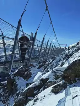 This "cliff road" located 500 meters deep between the "mountain walls" is 3,041 meters above sea level and holds the record for the highest suspension bridge in Europe. Standing above the icy abyss, my heartbeat quickened, but the view before me was absolutely beautiful.
