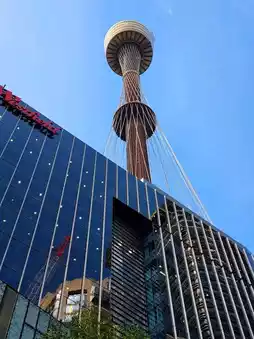 The Sydney Tower Eye is a popular tourist attraction in Sydney, Australia. It offers panoramic views of the city and its surroundings from the observation deck, which is located 250 meters above the ground. Situated in the heart of the city, it's easily accessible and often included in city tours.