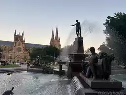 As Australia's largest and oldest Catholic church, the Cathedral of Our Lady (St. Mary's Cathedral) is located at the intersection of College Street and Prince Albert Road in Sydney's city center, across from Hyde Park. Construction began in 1821 and was rebuilt in 1928 after a fire. With its twin towers standing 74.6 meters tall, it has become a Sydney landmark. Its Gothic pointed arches, sandstone facade, and the colorful stone inlaid "Genesis" floor in the crypt evoke the legacy of medieval Europe.