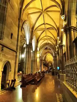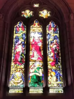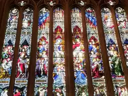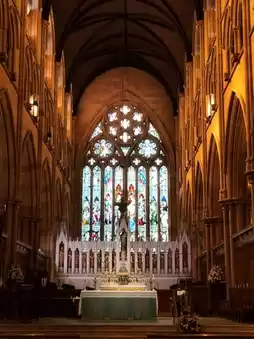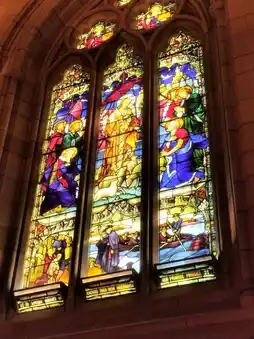 The architecture looks to be gothic with the colourful stained glass windows going with it perfectly!🌈