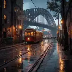 🚋 Rainy Nights by the Harbour Bridge – The sound of raindrops, tram wheels on wet tracks, and the glow of vintage streetlamps — Sydney turns cinematic when it rains.