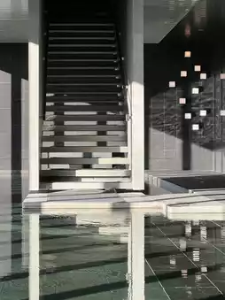 - The corridor leading to the pool is lined with warm floor lights, allowing you to feel the smooth texture of the stone beneath your bare feet