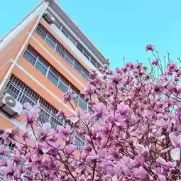 Blushing pink beneath springtime skies. 🌸💛