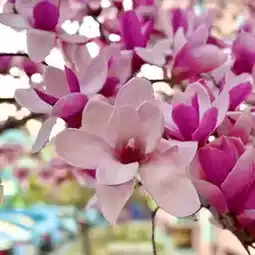 Magnolia blooms stretch, yawn, arise,