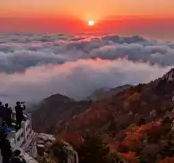 At the summit of Mount Tai, the sea of clouds collides fully with the autumn colors!