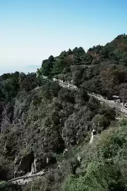 Early the next morning, before dawn, we set off from the Red Gate. The initial stone steps were gentle, accompanied by birdsong and the sound of streams, making the walk especially easy. Passing by Doumu Palace, the morning mist had not yet lifted, and the shadows of ancient cypresses swayed on the stone steps, as if stepping into an ink painting. But the higher we went, the steeper the path became, especially at the Eighteen Bends, where the stone steps were almost vertical. I gripped the handrail tightly, and every step made my legs ache. A little child beside me held her mother’s hand, panting and saying, “I can do it.” That resilience actually gave me strength, and I gritted my teeth, moving up step by step—turns out, perseverance on a journey is never a solo matter.