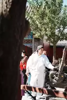 On the way down, we chose the cable car. From above, I finally saw the full view of Mount Tai: the bluish-gray stone steps winding around the green mountains like a ribbon; the red walls of temples standing out vividly among the trees. After landing, we visited Jingshiyu, where the Diamond Sutra is carved on a huge stone slab. Though the characters were somewhat blurred, they exuded a solemnity of a thousand years. Some people squatted in front of the stone, gently touching it, as if conversing with the ancients.