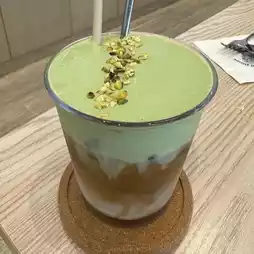 The rich pistachio milk foam is smooth and dense! It has a strong pistachio flavor with a subtle coffee aroma 👅
