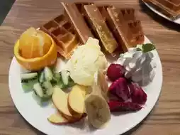 Hashipin's Waffles are all freshly made, the outer layer is super crispy and has a fluffy texture when you bite it. It's great! garnished with fresh fruit, you can eat the natural sweetness in every bite, so fresh that you can't stop. ✨