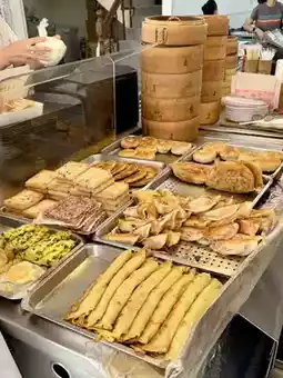 This popular restaurant offers a wide variety of freshly made Taiwanese breakfasts 24 hours a day, including egg pancakes, salty soy milk, deep-fried bread sticks, shao buns, xiaolongbao dumplings, and buns. They all look so delicious you'll have a hard time choosing what to order.