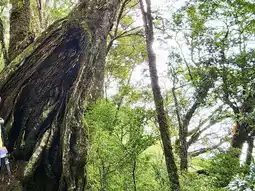 Along the way, you will pass through man-made forests, occasionally encountering uniquely shaped giant trees standing tall. Looking up at the treetops, the light filtering through the gaps creates beautiful refractions. The pristine forest is lush and green, making you feel as if you are in a green wonderland.