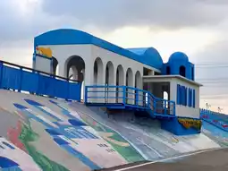 The beautified Lishui Fishing Port, known as "Little Greece", has become a new tourist attraction in Longjing District, Taichung City. The design here is inspired by the Mediterranean style of Greece, especially the blue and white architectural style, which makes visitors feel as if they are in the romantic atmosphere of Greece. The scenery here makes people feel like they are on the Greek island of Santorini, with its blue and white buildings and magnificent sea views, attracting many tourists and newlyweds to take wedding photos.