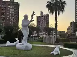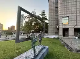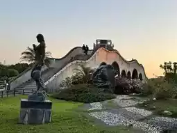 The park is packed with holiday tourists, and the climbing, rope and sand pit areas in the children's play area are very lively. The sounds of children playing make the sculptures feel like they are dancing. The lush green lawn may seem random, but it is perfectly placed to display sculptures with profound meanings, giving people the feeling of entering a natural art palace. It also makes Fengle Sculpture Park a landmark representing the cultural city of Taichung City.