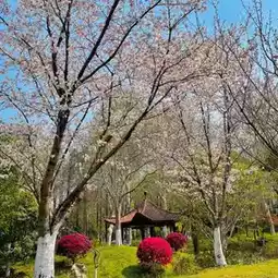 Walking into this garden, the pink petals flutter in the wind, like blessings from fairies. The Chinese-style pavilions in the park complement the cherry blossoms. The quaint pavilions appear particularly charming in the sea of flowers. It feels as if you are in another time and space, enjoying the beauty of this tranquility.