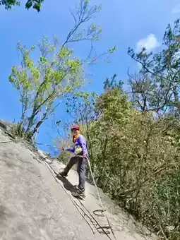 Starting from the Guguan Dadaoyuan, the single trek to Dongmao Mountain is approximately 7 kilometers. The trail is mostly gentle zigzag slopes, with only the last 500 meters near the triangulation point featuring a thrilling steep rock wall. Many hikers enjoy taking dramatic photos at this "thrilling steep rock wall," capturing the sense of accomplishment akin to climbing the cliffs of Taiwan's highest peaks.