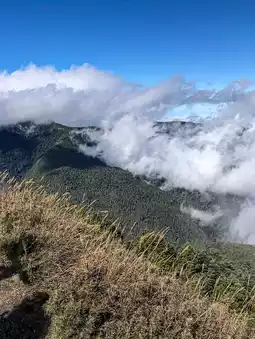 The hiking route starts from Wuling Villa in Wuling Farm and enters via the Taoshan Waterfall Trail. First, you walk along a firebreak, and then you can see the high mountain grass slope where you can see the entire Wuling Farm. The entire route is about 4.5 kilometers and requires climbing about 1,400 meters. Although the distance is not long, it is all uphill, which is a big test of physical strength.