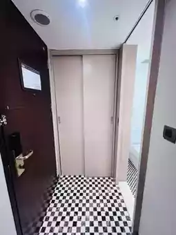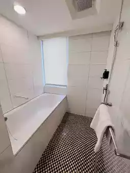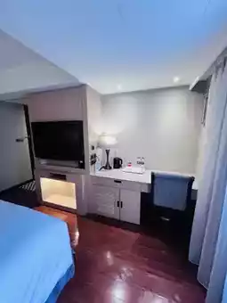 Upon entering the room, I was greeted by a refreshingly cool air conditioning system and a comfortable large bed 🛏️. One of the best parts of staying in a hotel is lounging on the bed and watching TV 📺, so having a spacious bed was a big plus! The bathroom was also well-designed with separate wet and dry areas, and the bathtub 🛁 was decently sized. The room also featured a large desk, slippers, and bottled water. Considering the government's environmental policies, I was pleasantly surprised that the hotel still provided these amenities.