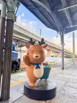 The park still retains the original platforms, station signs, and railway tracks, and there's also an exhibition area showcasing the stories behind the railway's operation. Nearby, I even saw an R100 diesel-electric locomotive on display. There's also the park's mascot, the Iron Deer.