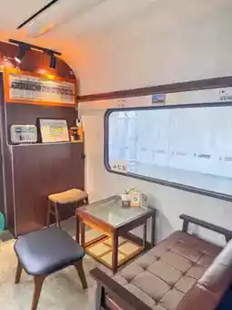 The interior of the carriage retains the original structure of EMU100, such as seats and number plates. And the leather seats, wooden tables, railway signs and model displays are cleverly integrated, which has a retro atmosphere.
