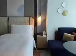 Walk-in shower and separate bathtub, high-end brand BYREDO bath products, Dyson hair dryer, Nespresso capsule coffee machine, Aiello smart full voice room voice control system, the amenities and facilities in the room are really full of texture, and the city style is unobstructed.