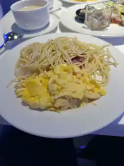Breakfast is served buffet-style, typically available from 7:00 AM to 10:00 AM. The menu combines both Western and Asian options, including freshly cooked multigrain porridge, pasta, toast, crab salad, scrambled eggs, fruits, and beverages like coffee and juice. The breakfast selection is diverse, the ingredients are fresh, and the taste is delightful 😋. Notably, the staff are friendly and attentive, regularly replenishing the food.