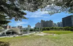 Wenxin Forest Park, nestled between the towering buildings of the 7th Redevelopment Zone and IKEA, serves as a green breathing space that is rich in poetic charm and the potential for urban dialogue. This is not an ancient forest but rather a "designed nature"—a landscape crafted with natural stone tiles, hilly trails, and shrubs and flowers, creating tranquil paths for the soul. The nearby Green Line MRT station is just steps away, yet it isolates the park from the city's hustle and bustle. The moment you step out of the train, you're greeted by grassy slopes and a gentle breeze that seem to resonate with your memories.