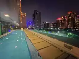 The bathrooms are equipped with separate wet and dry areas, a large bathtub for relaxing soaks, and complete amenities. The view from the windows is stunning, offering a panoramic cityscape that enhances the mood.