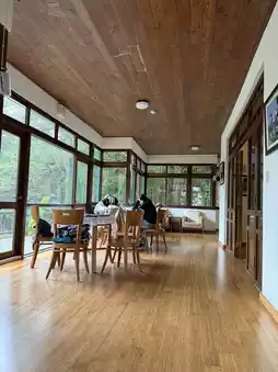 Walking along a mountain path, a pavilion suddenly appeared deep in the woods. It's called Daguan Pavilion. A simple wooden structure, unassuming, it quietly perches on the mountainside, nestled among the mountains and white clouds, accompanied by the sound of wind and birdsong.