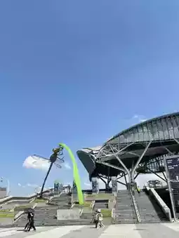 • The surrounding area has been transformed into a public area, complete with cafes, shops, a game room, and walkways connecting to the mall and shopping street.