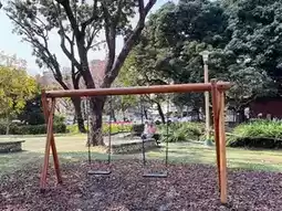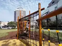 The park has been renovated with a Nordic style, featuring a wonderful wooden texture.
