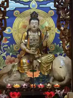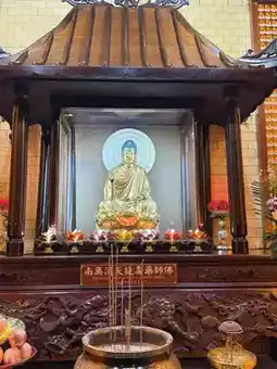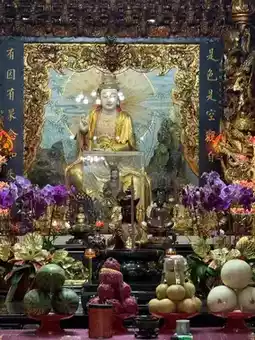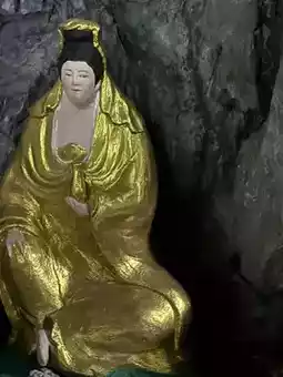 Entering the main gate, one is surrounded by pine and cypress trees, with swaying bamboo shadows, highlighting the temple's ancient and solemn beauty. Within the hall, Guanyin's image is dignified and benevolent, her majestic appearance imposing. Holding a pure vase and a willow branch, she seems to sprinkle nectar upon the mortal world, cleansing the cares of believers.