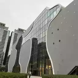 Based on the concept of a "sound cave," its unique exterior, combining curves and holes, exudes a sense of vitality, almost like a living organism, captivating visitors.